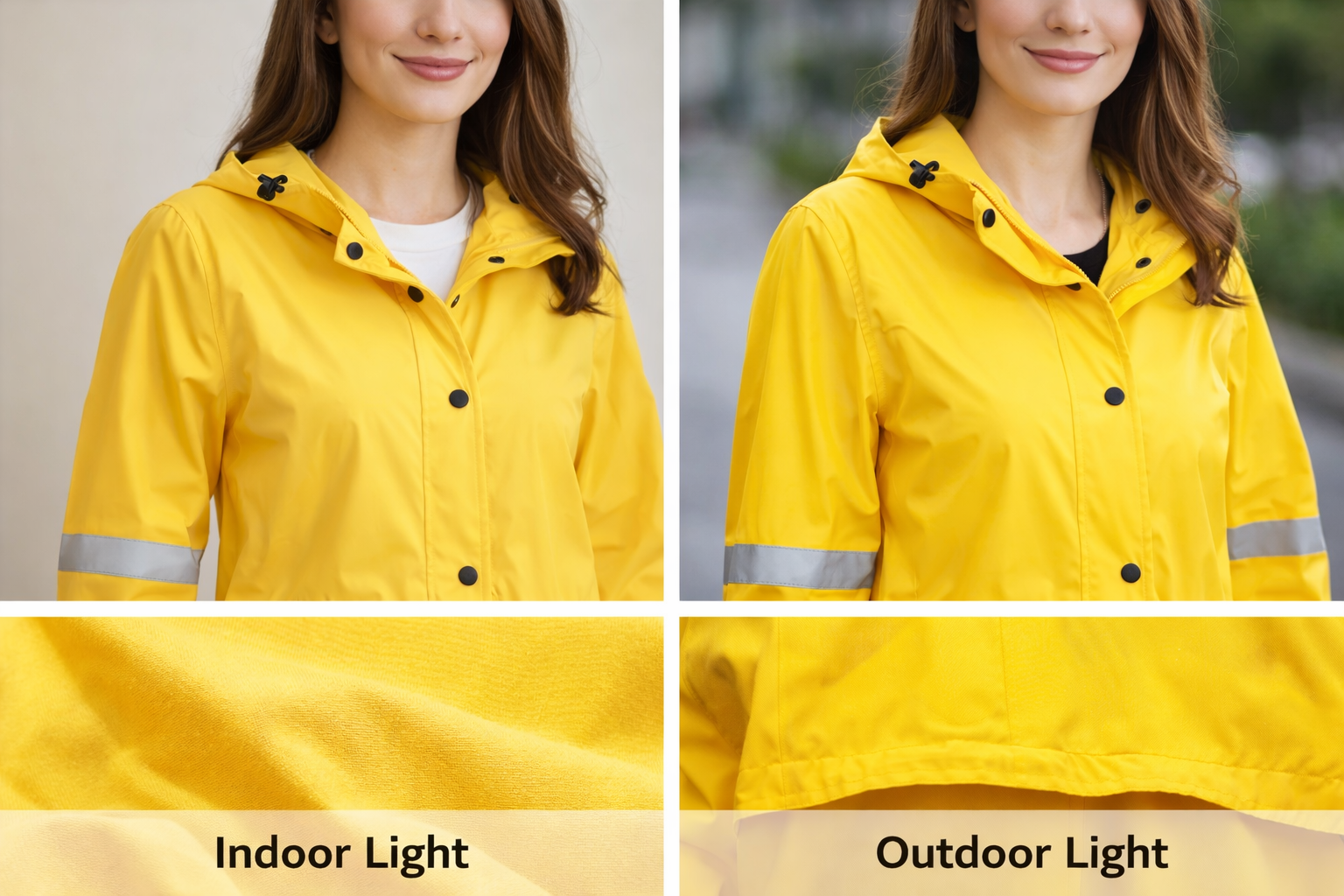 Color consistency: especially critical for yellow programs so yellow womens rain jacket and yellow raincoat long shades stay stable